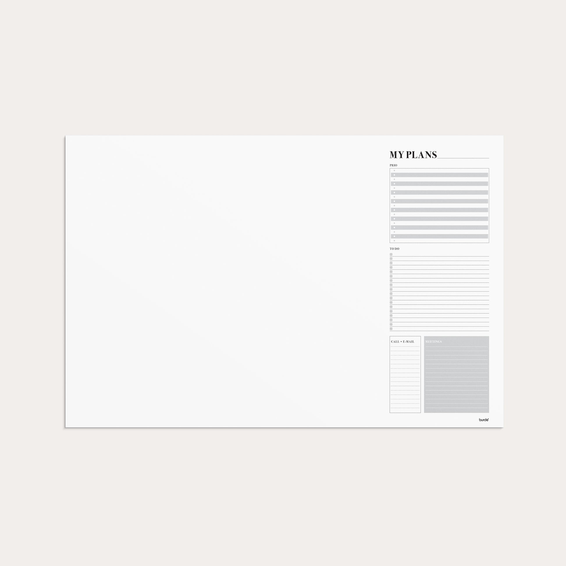 Praktisk skriveunderlag med god plass til egne notater. De tydelige seksjonene for prioriteringer, gjøremålsliste, samtaler og møter hjelper deg med å strukturere arbeidsdagen på en oversiktlig måte. Blokken inneholder 20 ark og er limt i nederkant.