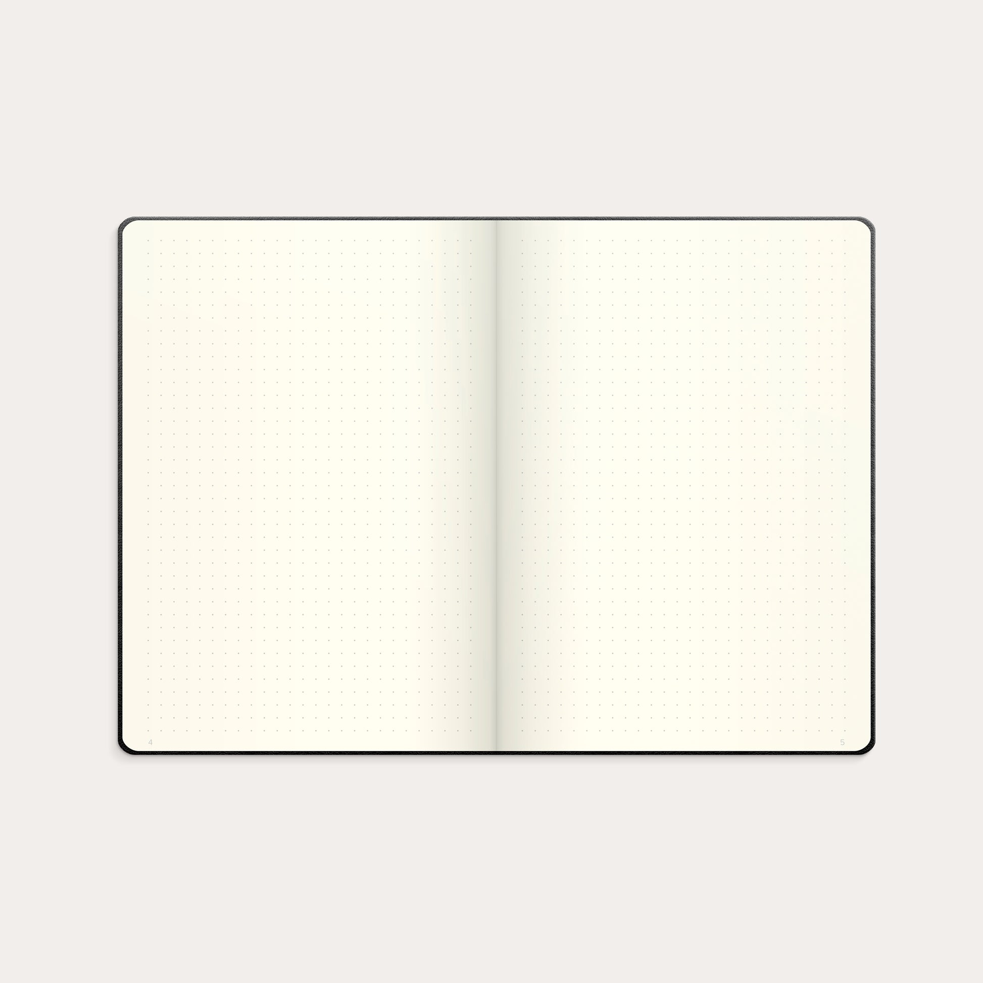 Our classic DotNotes with a black faux leather cover and matching elastic band. Perfect for anyone starting out with Bullet Journaling. Collect your ideas, to-do lists and notes all in one place. Contains 186 numbered, dotted cream-coloured pages made from 100 gsm acid-free and bleed-proof paper. Begins with “Content” pages for creating your own index. Also includes a cream-coloured paper pocket at the back and a black ribbon marker.