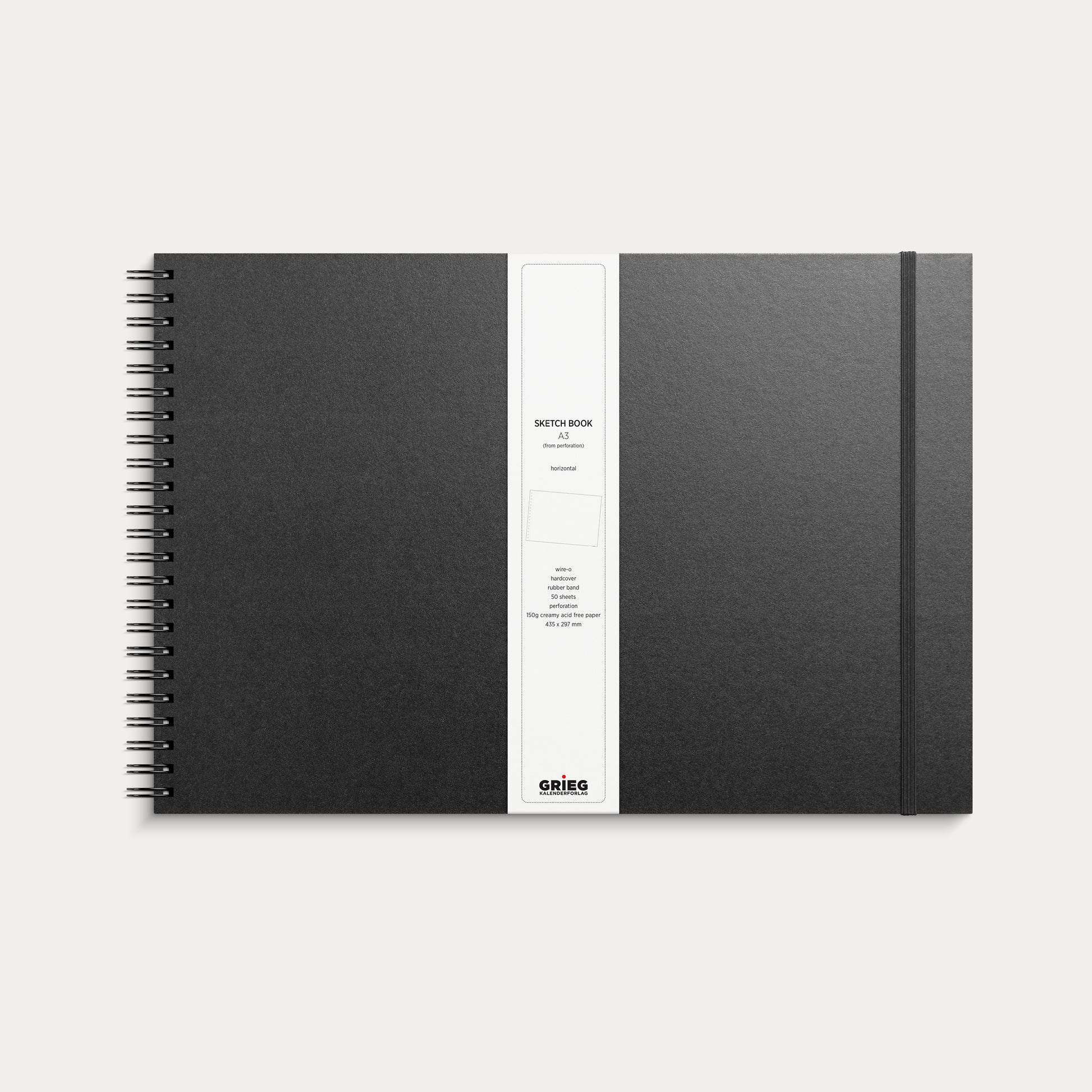 Sketch pad with a structured cardboard cover and a practical elastic band to keep your pages in place. Contains 50 cream-coloured, acid-free unlined sheets – offering a smooth surface for sketches and creative projects. Paper size after perforation: A3L.